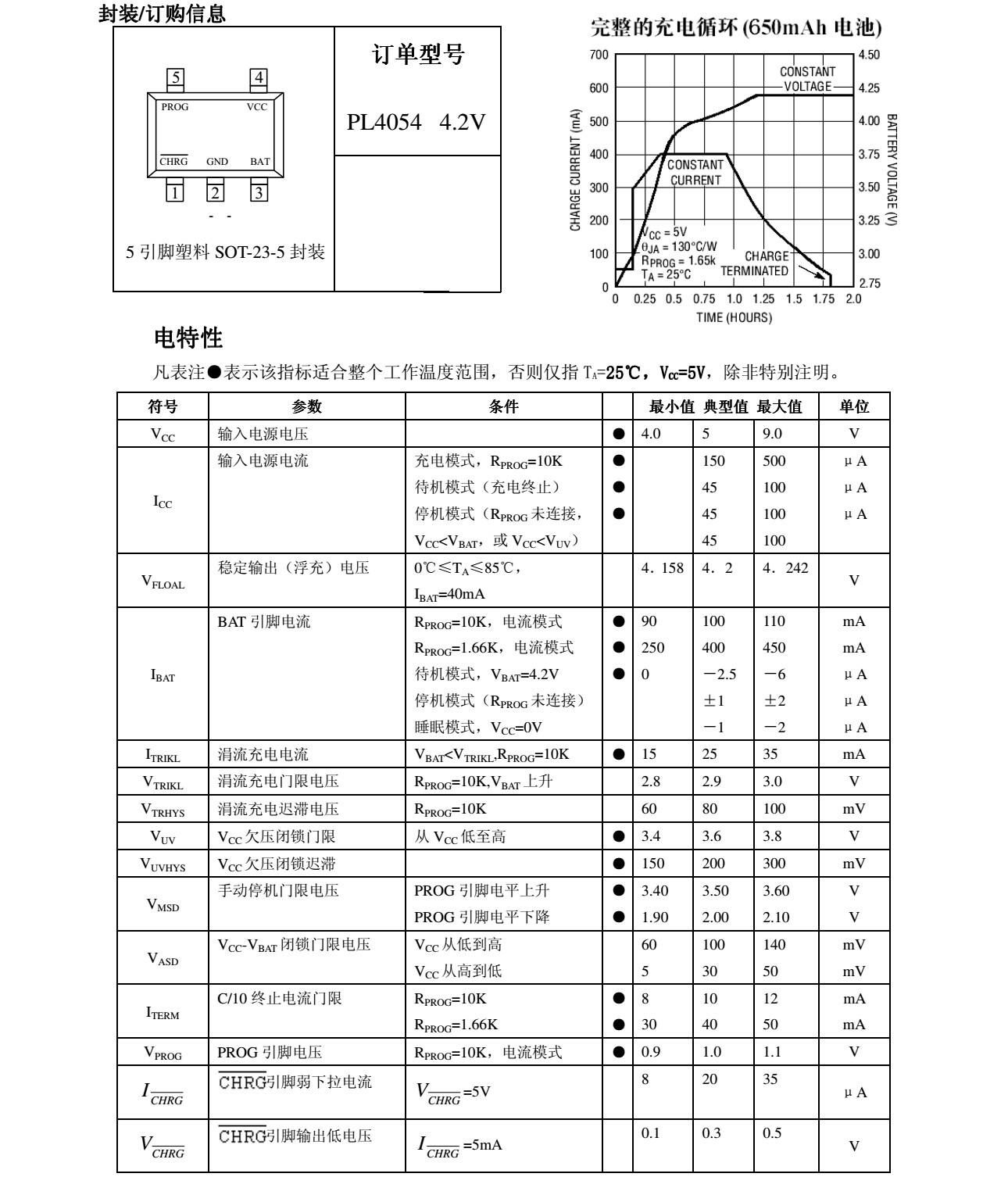 PL4054鋰電池500MA充電IC,SOT23-5封裝
