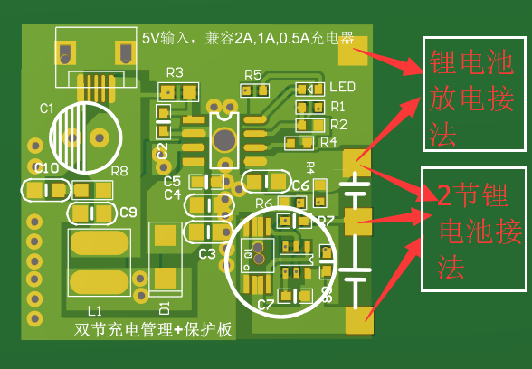 5V輸入,給兩節鋰電池串聯的專用充電IC-PL7501C   ,兼容5V1A,2A等適配器,自動兼容電流。