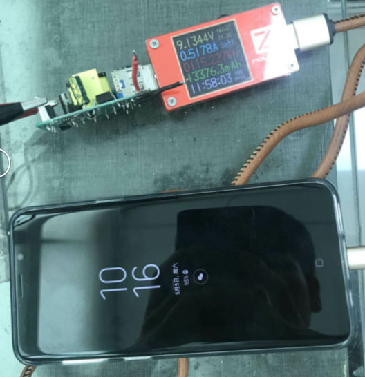 FP6601Q的手機充電器,給三星S9手機,進行充電測試: