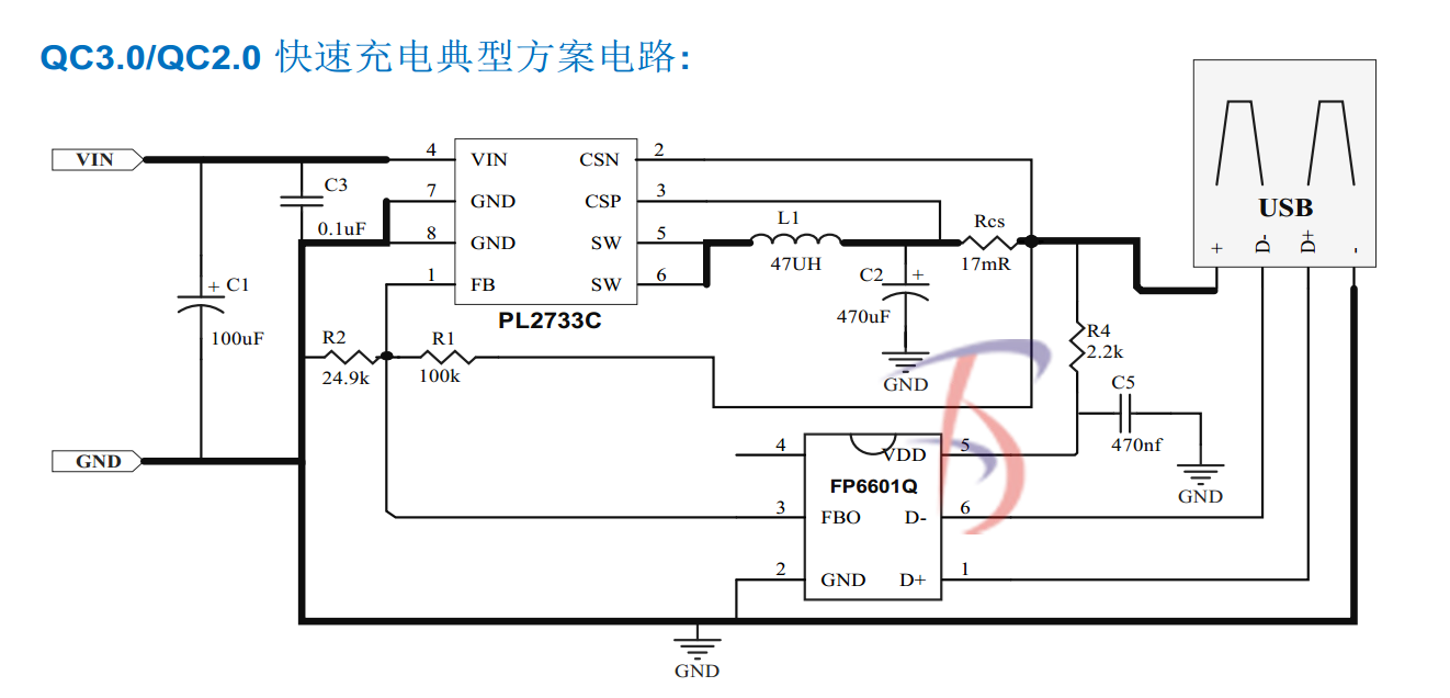 FP6601Q也是目前快充協議芯片中,最常用的,應用于:充電器,車載充電器,移動電源,墻充等等。