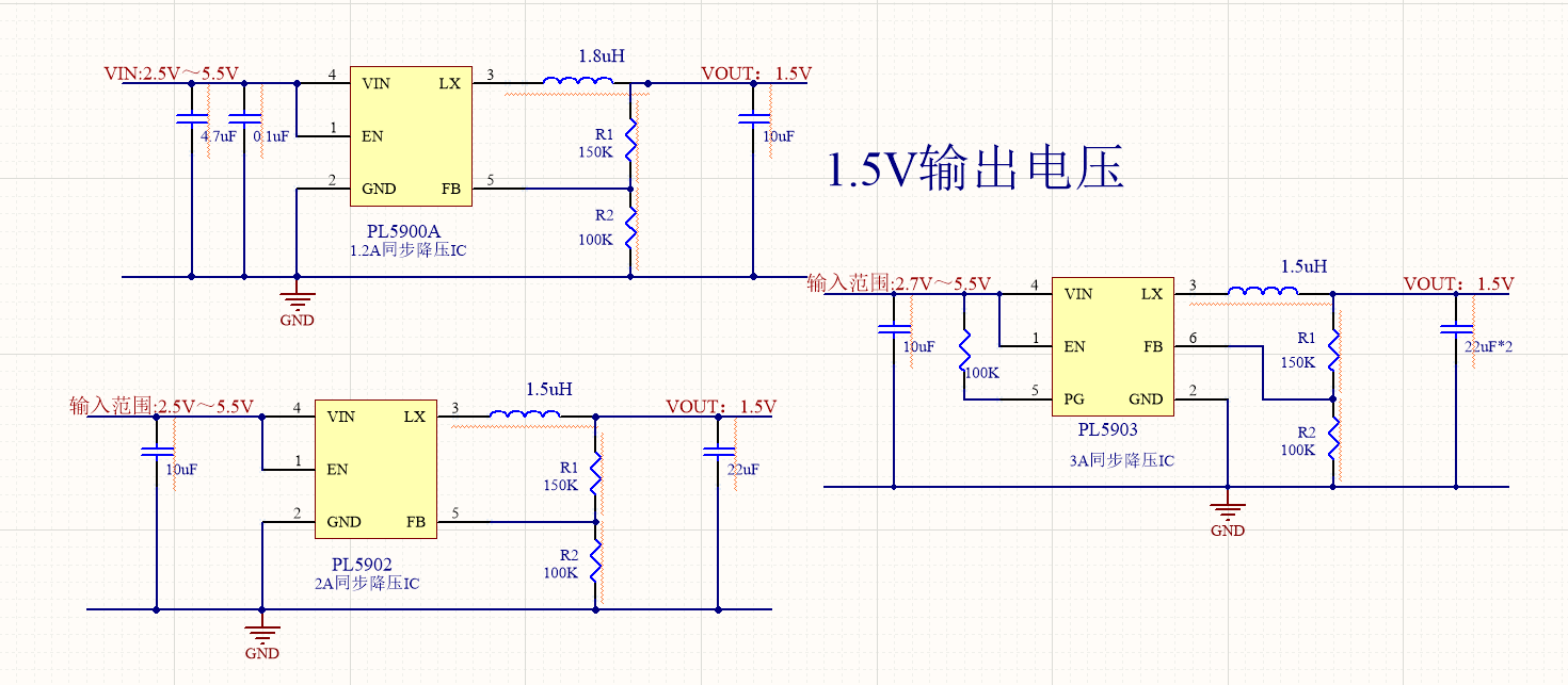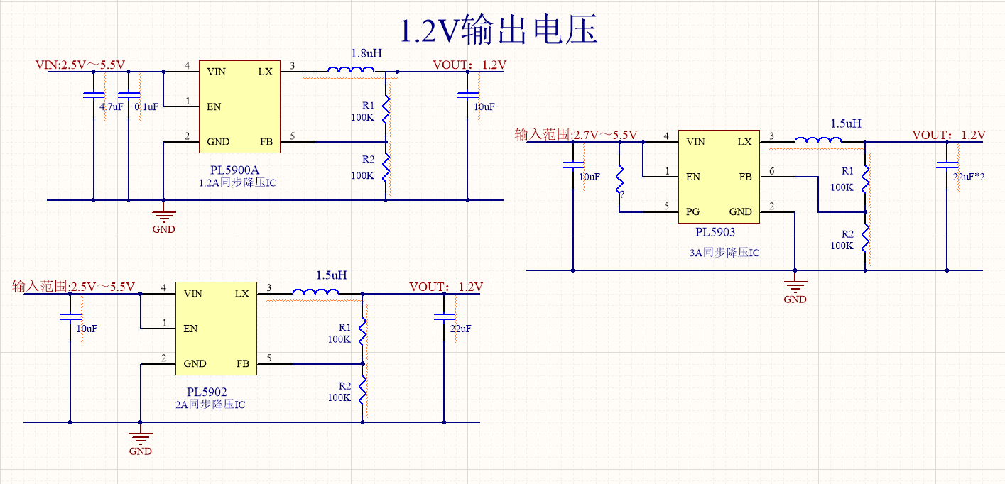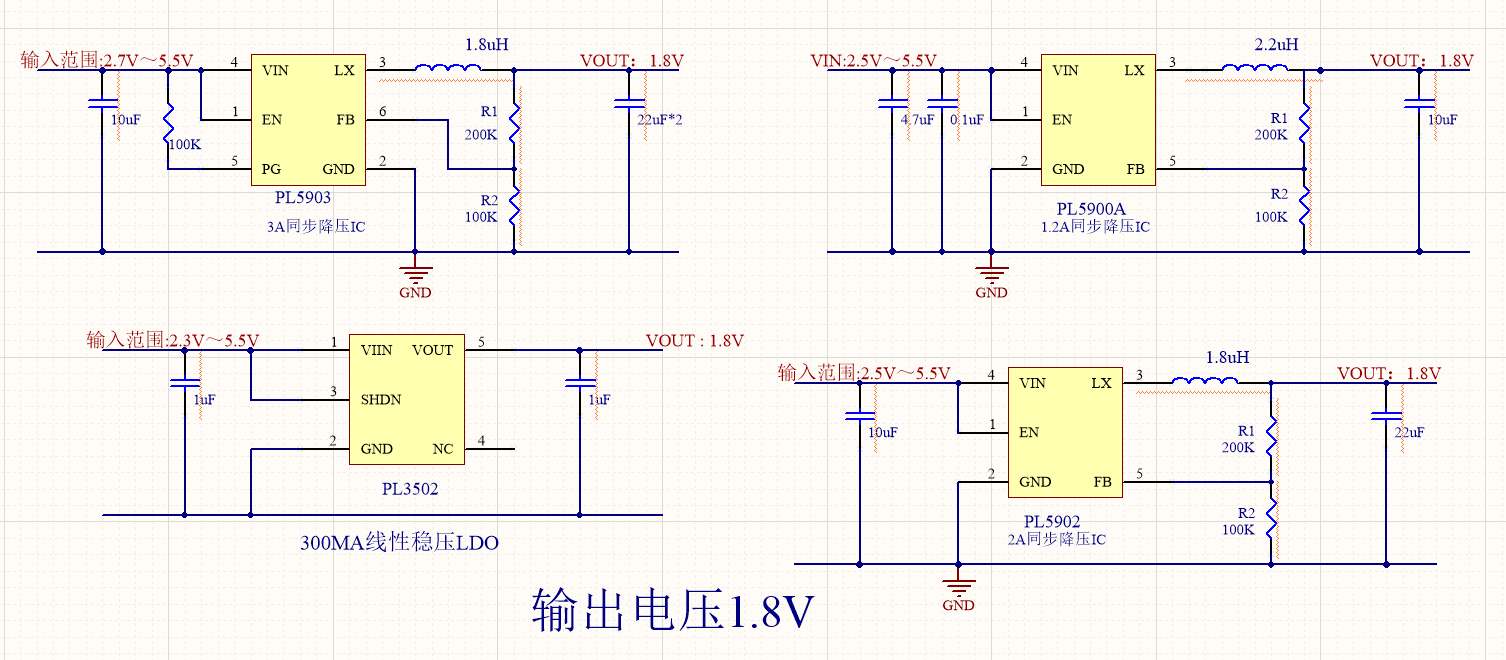 5V降壓1.8V,1.5V,1.2V,在對于電流,功耗,壓差等等不用需求時,需要選擇不同的芯片來幫助工程師搭建合適的應用電路。