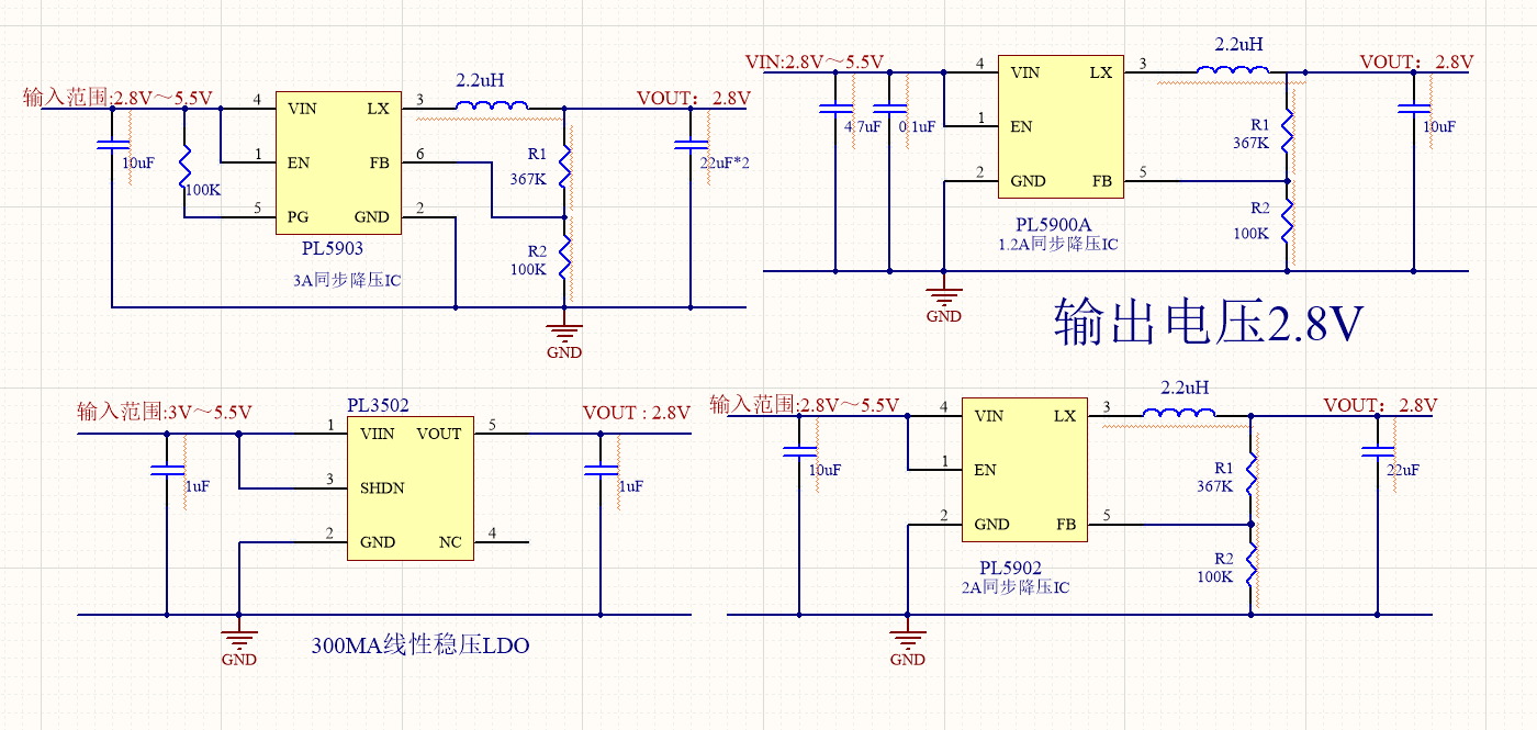 3.7V降壓3V,2.8V,3.7V降壓1.5V,3.7V降壓1.2V,3.7V降壓1.8V。