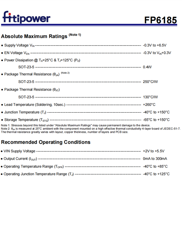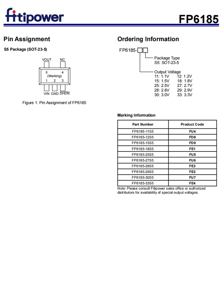 FP6185提供了高精度的?2%.輸出電壓FP6185有SOT-23-5軟件包,尺寸小。