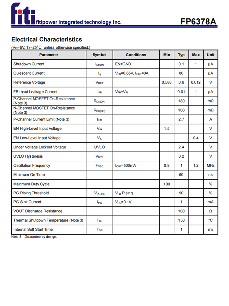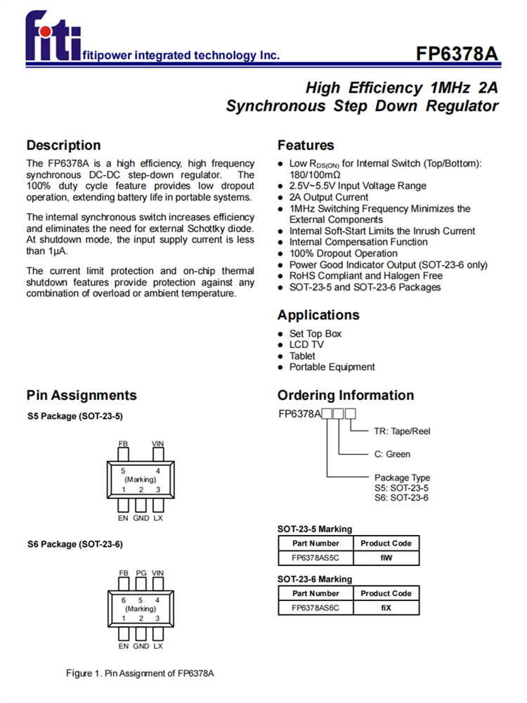 FP6378A是一種高效、高頻的同步DC-DC降壓調節器。100%占空比功能提供了低退出操作,延長了便攜式系統的電池壽命。