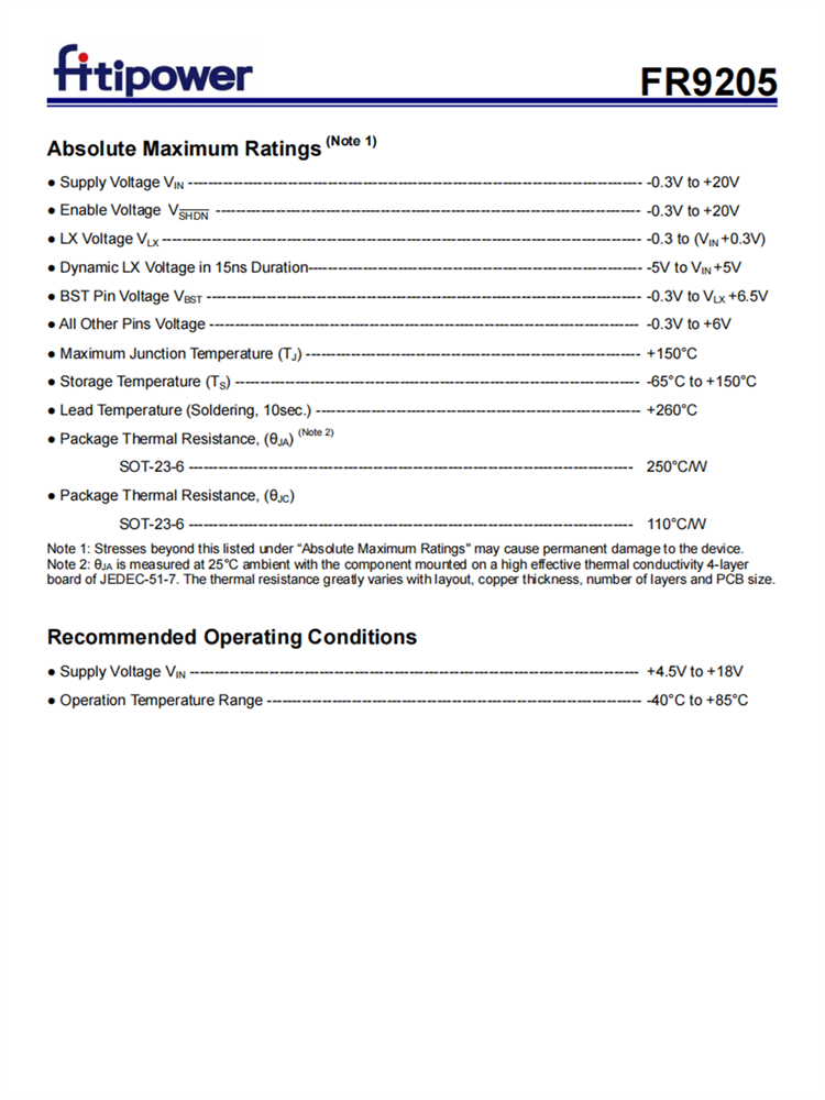 FR9205 18V、2A同步降壓DC/DC轉換器