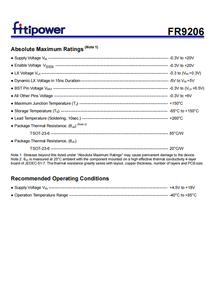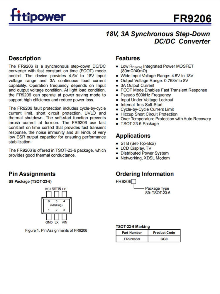 FR9206采用TSOT-23-6封裝,提供良好的導熱性。