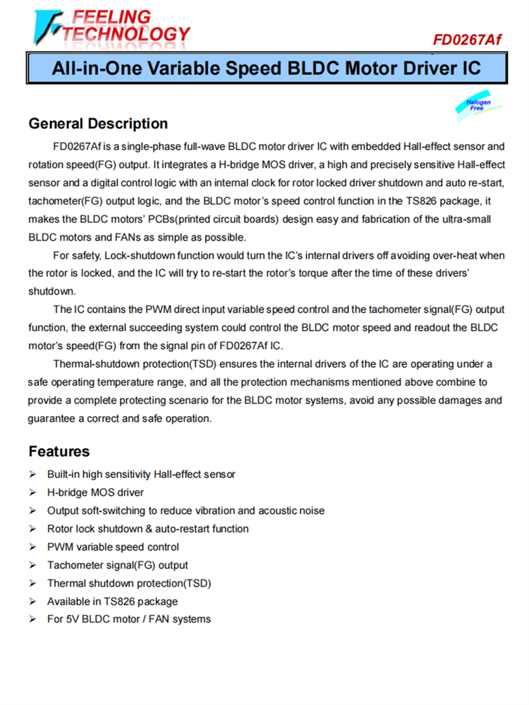 FD0267AF 一體機變速BLDC電機驅(qū)動器IC