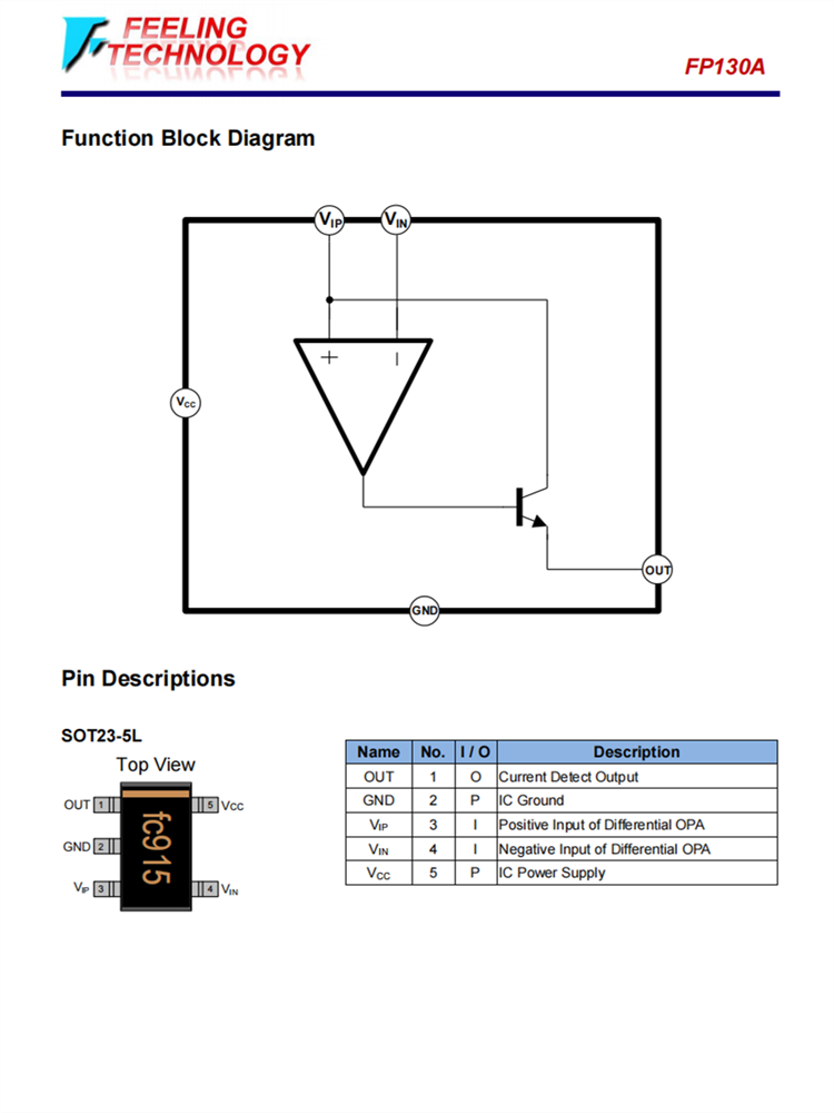 FP130A 封裝SOT23-5L 軌道電流測(cè)量IC