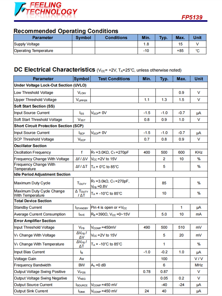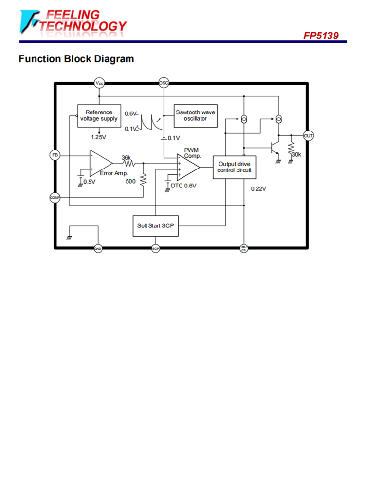 FP5139是一種升壓拓?fù)溟_關(guān)調(diào)節(jié)器控制IC。FP5139包括用于驅(qū)動NPN晶體管或N-MOS的圖騰柱單輸出級,用于比較輸出電壓的高精度參考電壓(0.5V),用于控制最小占空比的內(nèi)部占空時間控制、具有短路保護(hù)功能的可編程軟啟動和用于操作模式或待機(jī)模式的邏輯電平控制。