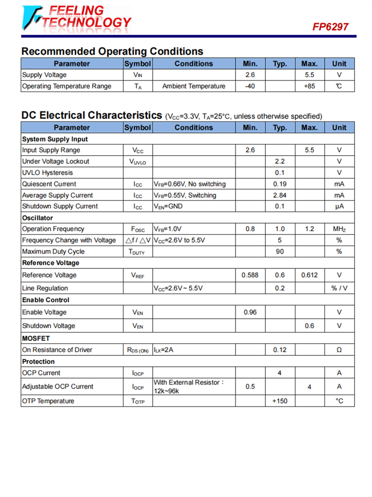 精度反饋參考電壓: 0.6V(±2%)