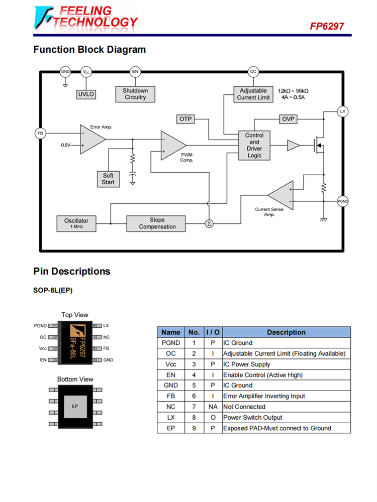 FP6297 1MHz,4A升壓電流模式PWM轉(zhuǎn)換器芯片