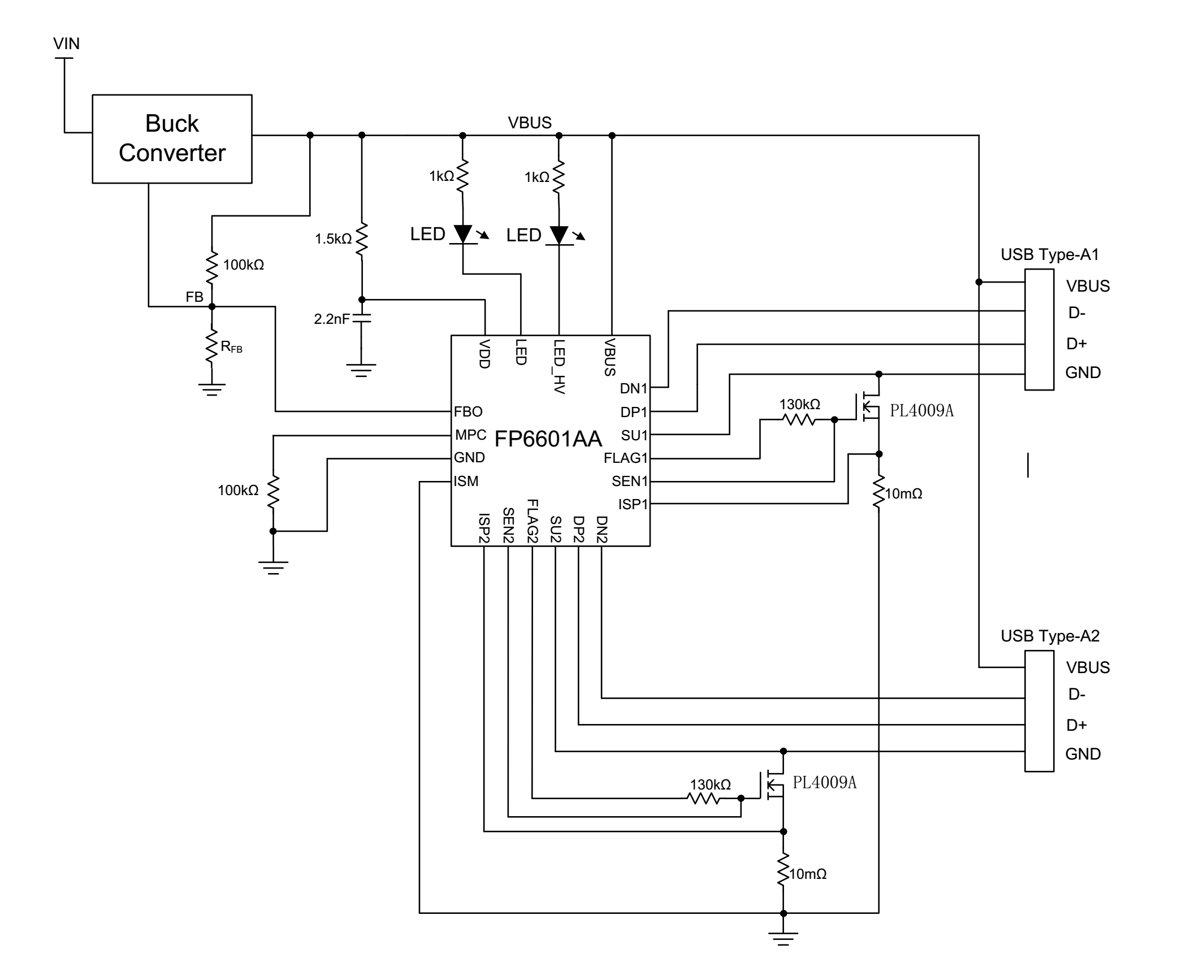 FP6601AA是一種雙端口USB A型快充充電協議控制器,自動檢測USB口的插入,自動快充充電協議的檢測:高通QC3.0,高通QC2.0,華為FCP,三星AFC,自動監控USB端口的D+,D-數據和根據不同的手機和設備的取決,調整輸出電壓。