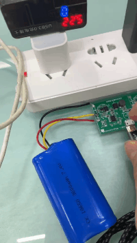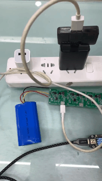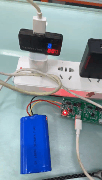 下圖PCB板子,帶雙節鋰電池保護電路(下圖測試圖片是 GIF)