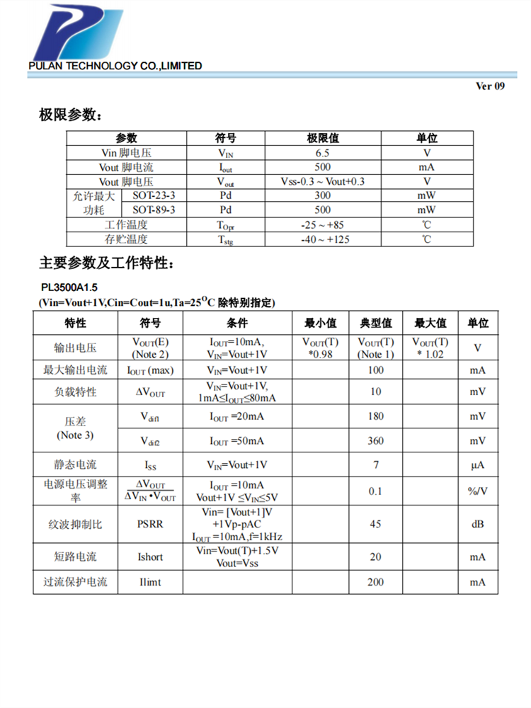 PL3500繫列是高紋波抑製率、低功耗、低壓差,具有過流和短路保護的 CMOS 降壓